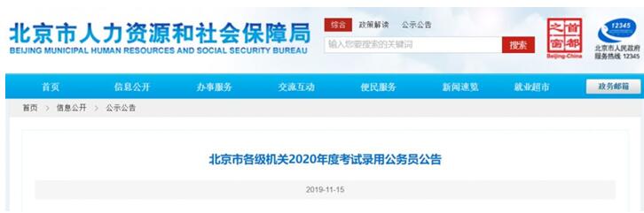 根据公务员法和公务员录用的有关规定,北京市公务员局将组织实施北京市各级机关2020年度考试录用一级主任科员及以下和其他相当职级层次公务员工作。北京市2020年度非定向选调生招考纳入公务员招考同步进行。