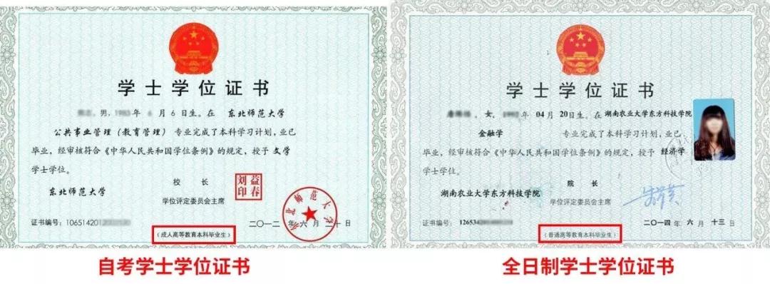 5. 自考学士学位证和统招学士学位证有什么区别?